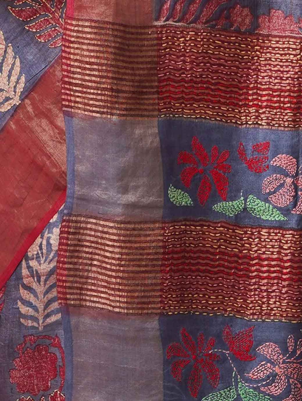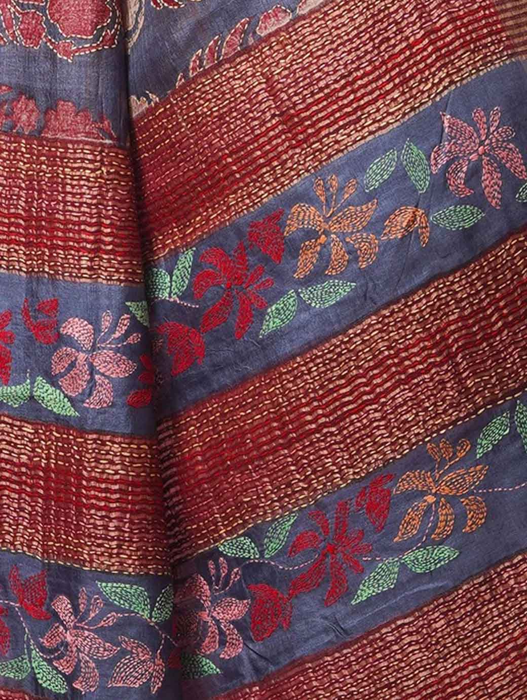 Maroon and blue tussar saree