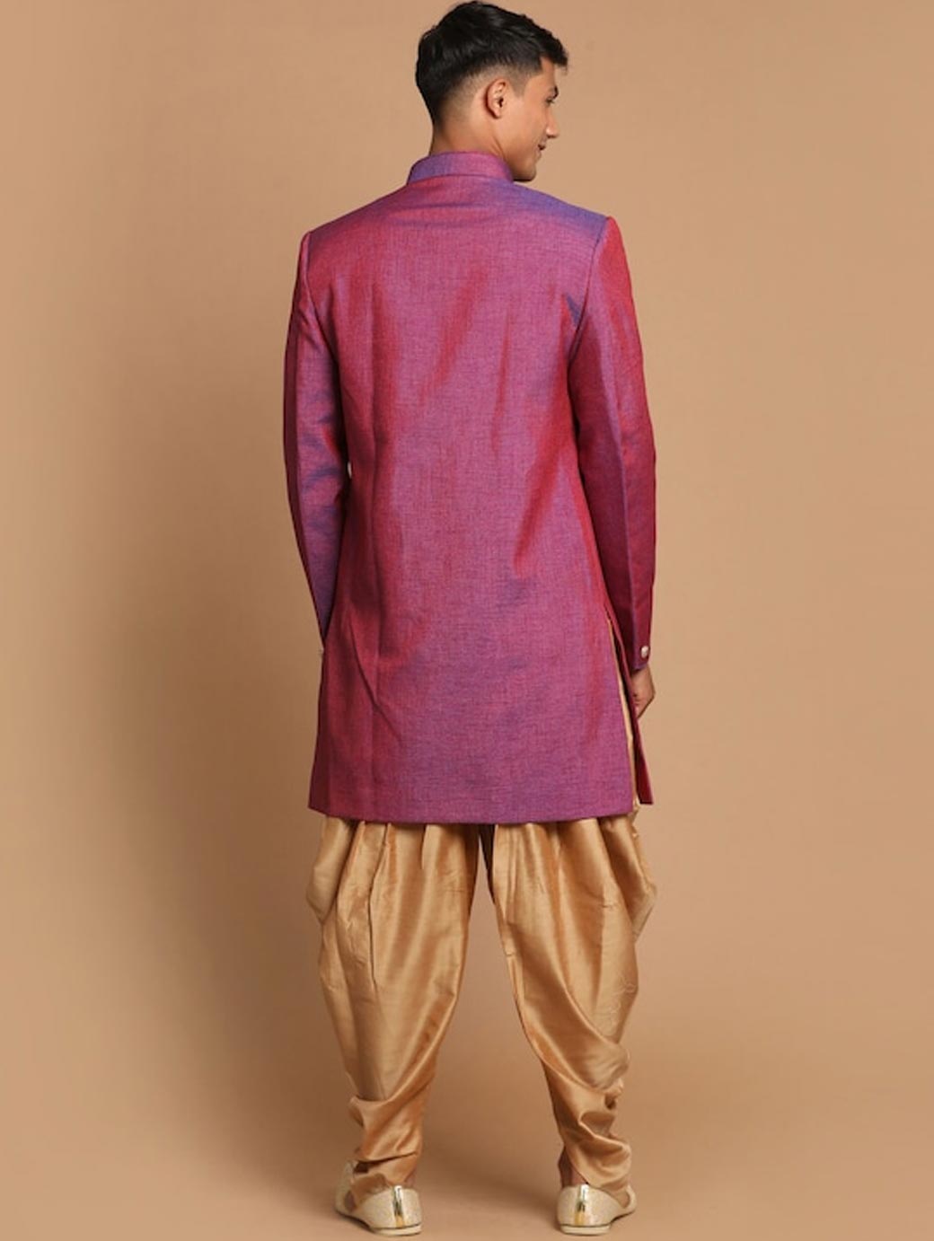 Men Magenta & Rose Gold Silk Blend Sherwani With Patiala