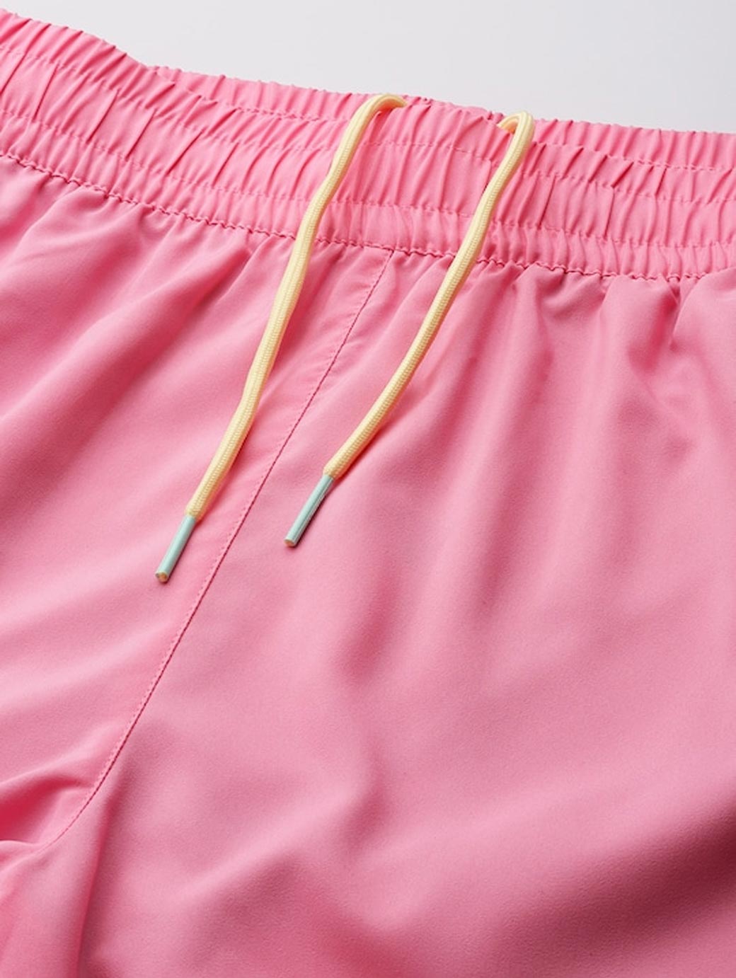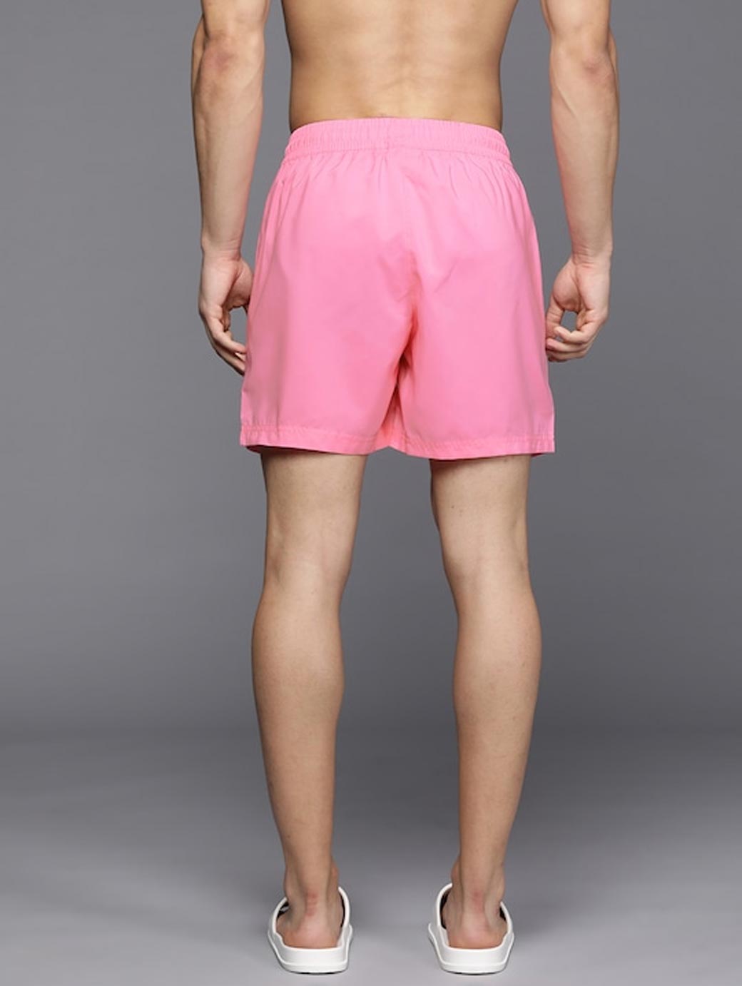 Product design details Pink Solid Swim Shorts Elastic waist Drawstring closure 2 Side pockets Mesh inner briefs.So dive in without a second thought in these swim shorts. The pastel color gives it a relaxed touch, just how you'll feel when you put it on. This garment has been made with recycled (r) yarn.