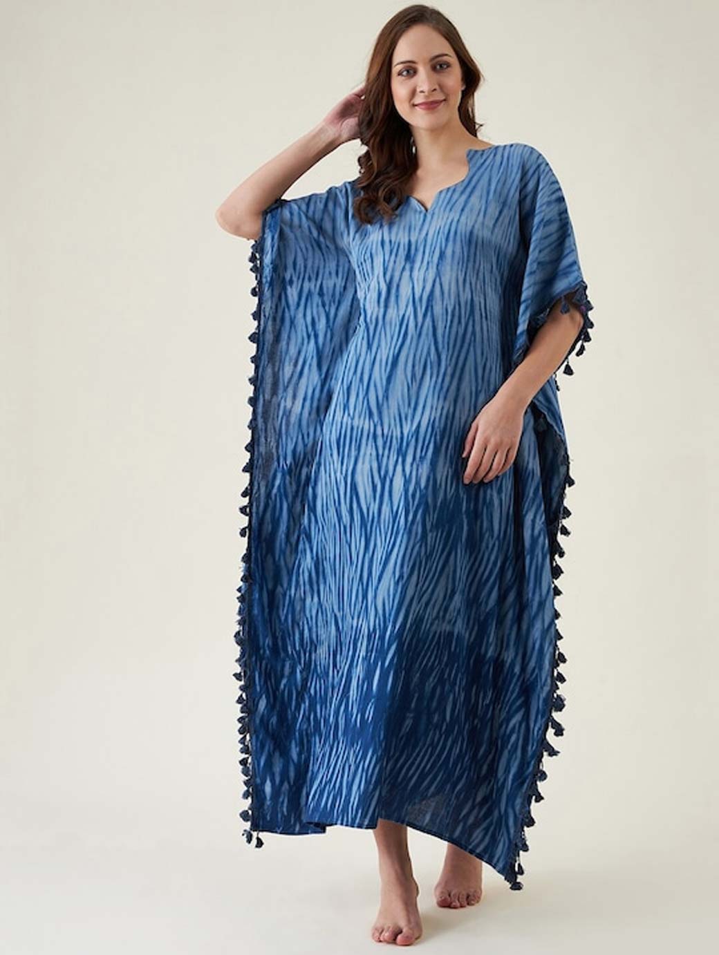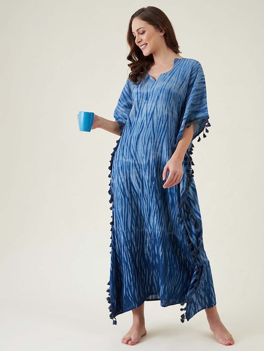 Navy Blue Printed Maxi Nightdress