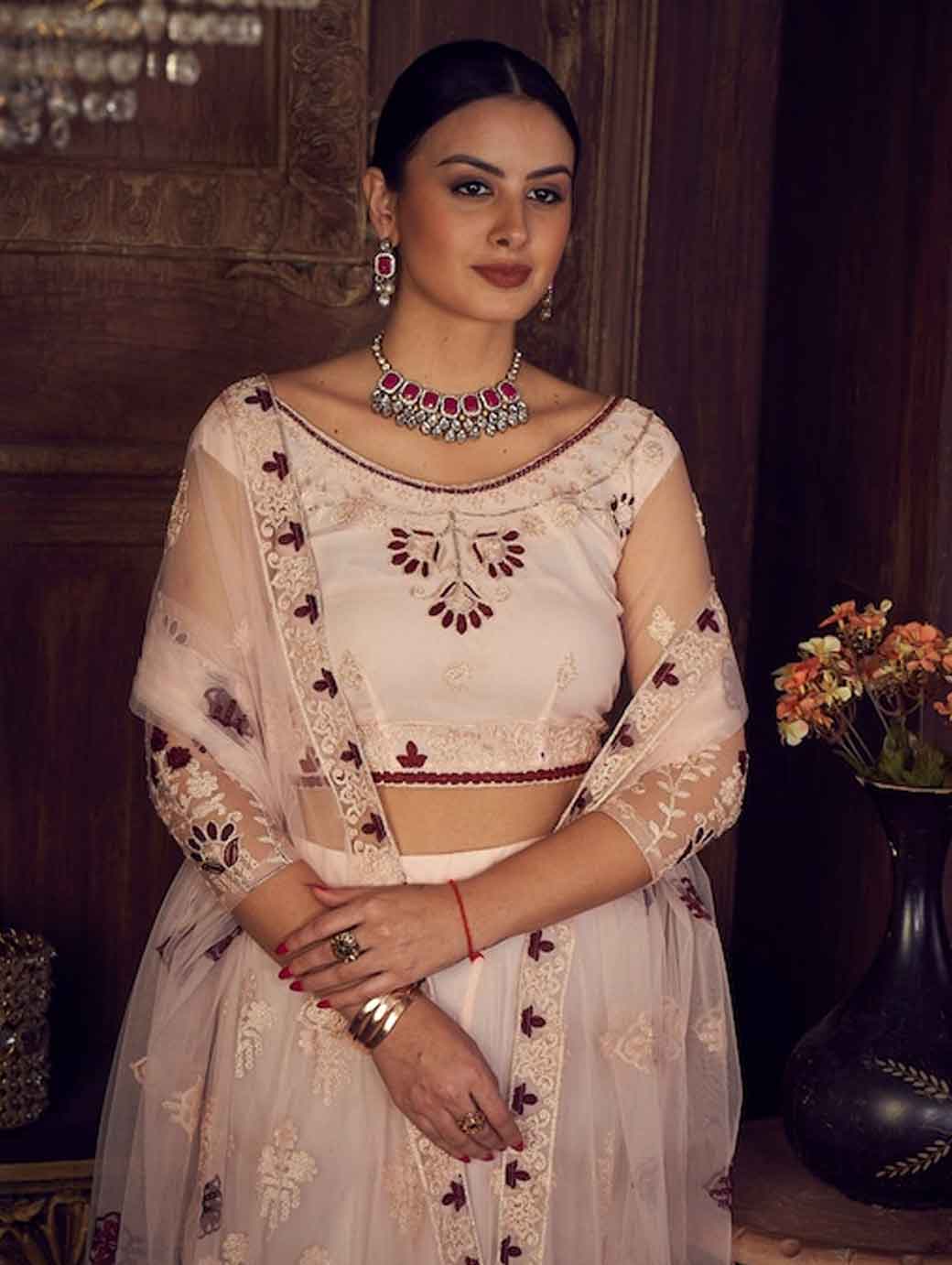 The model (height 5’8) is wearing a size S, Blouse: 31.4961″ inches / 0.80 metreBlouse bust customisable upto: 44″ inches / 1.1176 meterShantoon inner: 31.4961″ inches / 0.80 metre Lehenga waist customisable upto: 42″ inches / 1.0668 meterLehenga Length:42 inches / 1.0668 meterLehenga flare: 100″ inches / 2.5 metresDupatta length : 82.6772″ inches / 2.10 metres
