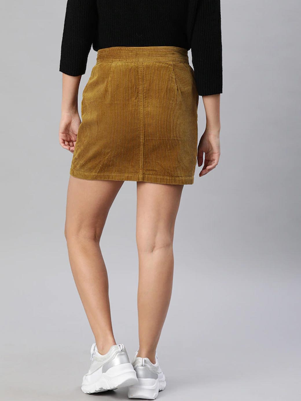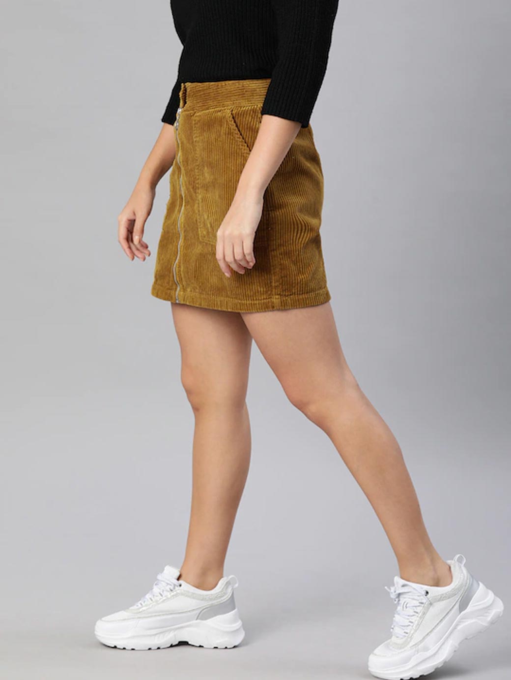 Brown Solid Skirt with zip closure and 2 pockets