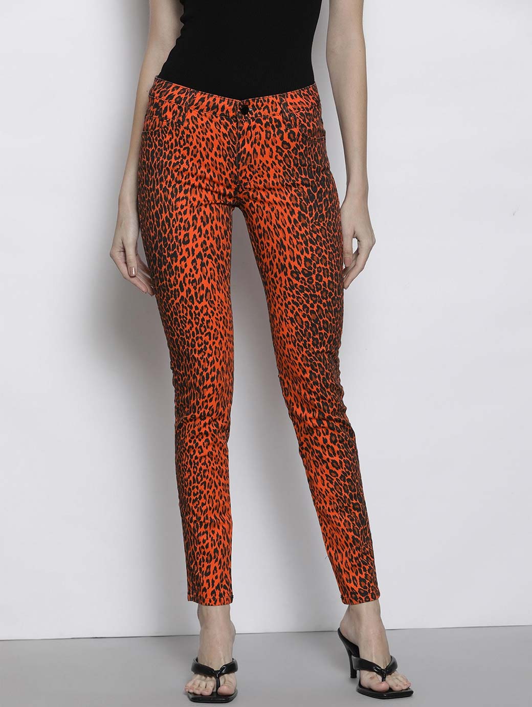 Women Red & Black Skinny Fit Animal Printed Stretchable Jeans
